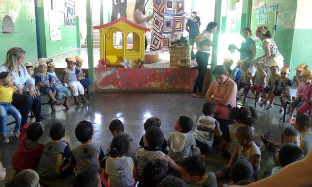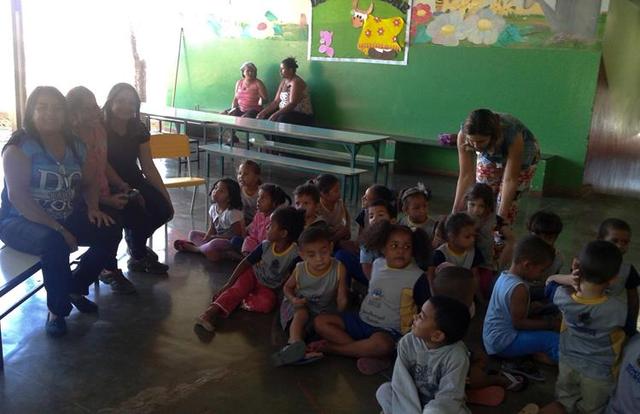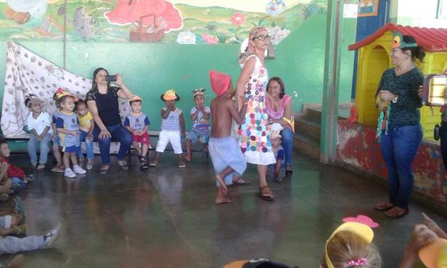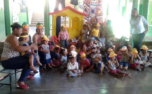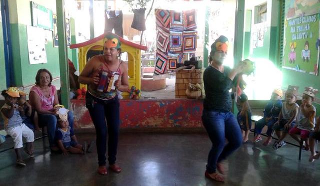 O teatro, que proporcionou a interação do público com a história por meio de imitação dos sons dos bichos, contou com a participação dos alunos do maternal I e do 2º Período, e com decoração feita pela auxiliar de docência Eliane, que fez também o papel de Dona Nina.