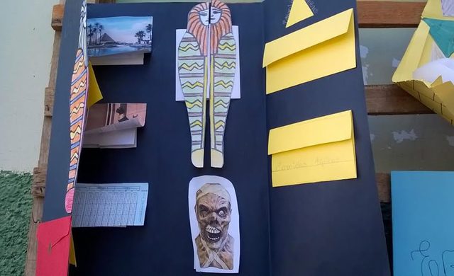 Sob orientação dos professores Sebastião Abiceu e Tatiane Caetano, os alunos foram convidados a produzir lapbooks, livros de colo, para representar o conteúdo trabalhado na disciplina História. "Trata-se de um recurso muito rico, com inúmeras possibilidades que estimulam a criatividade dos alunos, facilitando a aprendizagem. Eu utilizo sempre", afirma Tatiane.